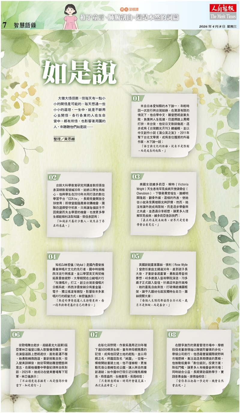 「每個人生階段都值得全力以赴,歲月不是阻礙,而是養分。」