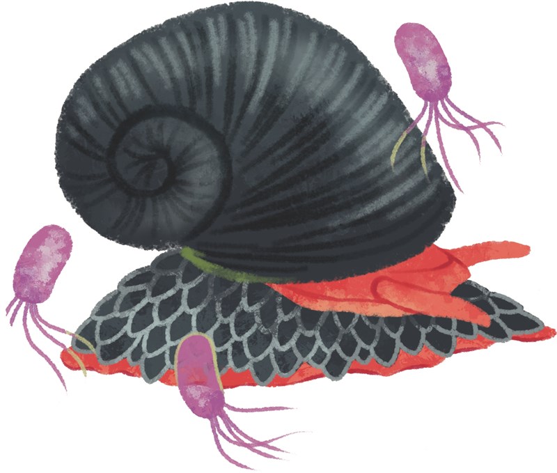 菱角腹足蝸牛不用吃飯? 文/姚文邦 |2026.04.08 語音朗讀 24觀看次 字級 大 中 小 圖/Yapei圖/Yapei圖/Yapei 文/姚文邦提到蝸牛,許多人腦海裡浮現的畫面,往往是那隻背著殼、慢慢前進的小動物。甚至不少人會想起周杰倫唱的那首歌:「我要一步一步往上爬,等待陽光靜靜看著它的臉,小小的天,有大大的夢想。」在日常印象裡,蝸牛似乎總是與緩慢、柔軟、脆弱聯繫在一起。然而,在地球最黑暗、最極端的深海世界裡,卻存在著一種完全顛覆想像的蝸牛:菱角腹足蝸牛。鎧甲著裝 深海騎士這種蝸牛生活在印度洋深海的熱液噴口附近,深度大約在兩千多公尺。那裡沒有陽光,海水壓力巨大,海底裂縫會噴出高溫且富含金屬與硫化物的熱液,環境對多數生命而言幾乎是致命的。但正是在這樣的極端條件下,菱角腹足蝸牛演化出令人驚嘆的生存方式。牠的學名是 Chrysomallon squamiferum,科學家更常稱牠為「鐵甲蝸牛」,因為牠的身體彷彿穿著一套金屬盔甲。一般蝸牛的殼主要由碳酸鈣構成,而菱角腹足蝸牛的殼卻不同。牠的螺殼由三層結構組成,最外層含有硫化鐵礦物,中間是一層有機物質,內層才是碳酸鈣。這種結構讓牠的殼既堅硬又具有韌性,彷彿天然的複合裝甲。更奇特的是,牠的腹足兩側長滿一片片黑色鱗片,而這些鱗片同樣含有鐵質礦物。換句話說,牠是目前已知唯一把鐵元素整合進身體結構的動物,整隻蝸牛看起來就像一位穿著鎧甲的深海騎士。細菌共生 活化營養在深海熱液噴口的世界裡,食物來源也與我們熟悉的生態系完全不同。由於沒有陽光,植物無法進行光合作用,整個生態系仰賴的是「化能合成」。菱角腹足蝸牛體內寄生著大量共生細菌,這些細菌能利用熱液中的硫化物進行化學反應,製造出有機物質,為蝸牛提供養分。也就是說,牠幾乎不需要像其他蝸牛那樣進食,而是讓細菌在體內「工作」,替牠生產營養。為了讓這些細菌能夠順利運作,牠甚至演化出比例相當巨大的心臟,以便輸送氧氣與養分。這層金屬裝甲不只是奇特的外表,也是一種生存策略。深海熱液噴口附近仍然有不少掠食者,例如深海蟹與魚類,而鐵質鱗片與多層殼體能有效抵禦攻擊,同時也能承受高壓與極端環境。這種天然裝甲甚至引起材料科學家的興趣,因為它的結構結合了硬度與韌性,可能為未來防護材料提供新的靈感。黑暗海底 瀕危物種然而,這種奇特的生命也面臨新的威脅。菱角腹足蝸牛的棲地非常有限,目前只在印度洋少數幾個熱液噴口被發現。這些區域同時富含金屬礦物,正逐漸成為深海採礦的目標。由於棲地狹小且數量稀少,國際自然保護聯盟已將菱角腹足蝸牛列為瀕危物種,甚至被認為是第一個因深海採礦而面臨滅絕風險的物種。從「我要一步一步往上爬」的溫柔形象,到深海裡穿著鐵甲的蝸牛,這種動物讓人重新思考生命的可能性。原來蝸牛不只是慢慢爬行的柔軟小生物,在地球最極端的環境裡,牠也能演化成披著金屬盔甲、依靠細菌生存的深海奇兵。當我們談論生命的韌性時,或許正如那首歌所唱的,小小的生命,也能在遙遠黑暗的海底,懷抱著屬於自己的巨大夢想。 前一篇文章 核能發電知多少 下一篇文章 袋鼠鼠不喝水祕訣 熱門新聞 01【讓愛自由】纏繞與獨立之間2026.04.0202新生首次到校2026.04.0203星雲大師靈骨分燈泰國 化益世人2026.04.0204打字機重返課堂 對抗AI代寫2026.04.0205租賃車業者違法攬客 觀光署:最高罰200萬元2026.04.0706緬甸佛學院訪佛光山 深化教育弘法發展2026.04.0207日月潭蓄水率 跌破6成2026.04.0208睡足多運動常吃蔬菜 改善生活習慣促健康2026.04.0209徐若熙日職初登板 6局6K奪首勝2026.04.0210奧斯陸佛光童軍 體驗禪修學滑雪2026.04.02 訂閱電子報 台北市 天氣預報 台灣一週天氣預報 相關報導 袋鼠鼠不喝水祕訣核能發電知多少從中東戰爭到台灣晶片塑膠面面觀拒絕隨行夥伴—塑膠微粒節氣、農耕與科學間 文化密碼 作者其他文章節氣、農耕與科學間 文化密碼【上了一課】珍惜與感恩什麼是葉羊?冰人奧茲古羅馬寶藏故事太陽決定鱷魚性別