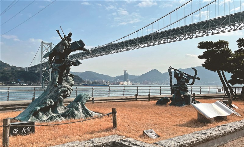 關門大橋下的源義經、平知盛銅像。圖/瑞奇