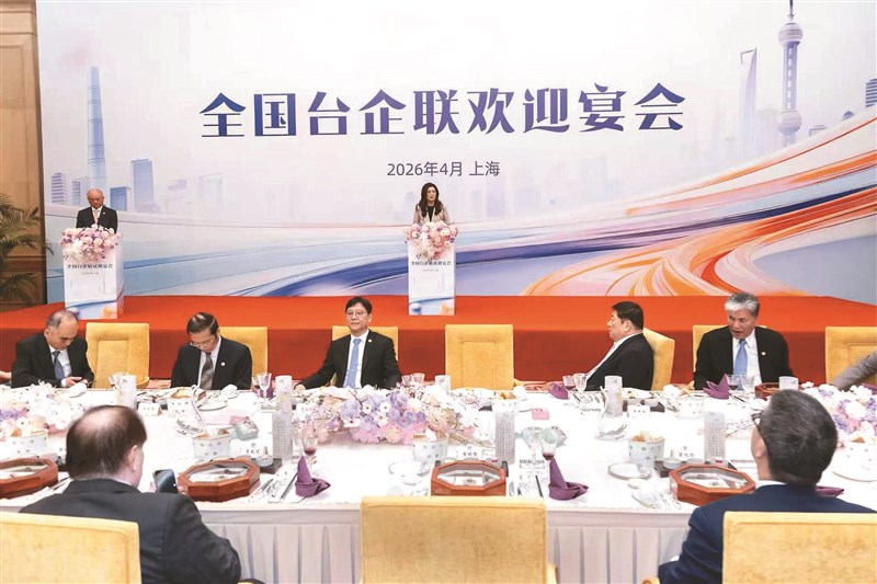 國民黨主席鄭麗文(立者右)昨天在上海東郊賓館與大陸台企聯餐敘,現場近300名台商與會。圖/國民黨提供