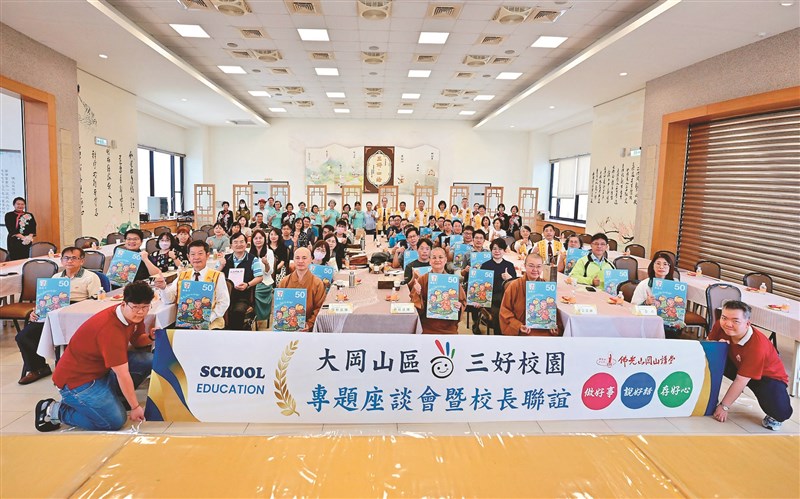 【人間社記者羅秀春高雄報導】佛光山岡山講堂八日舉辦「大岡山區三好校園座談會暨校園安全案例分享」,邀請燕巢區鳳雄國小校長陳文炳、旗山區嶺口國小校長賴坤弘、永安國中校長邱侶文,分享三好教育推動成果,探討如何將「做好事、說好話、存好心」深耕於校園,形塑良善品德文化。