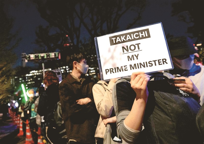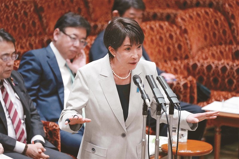日本首相高市早苗積極推動修憲,圖為她日前在東京國會參議院預算委員會會議回答議員的問題。圖/法新社