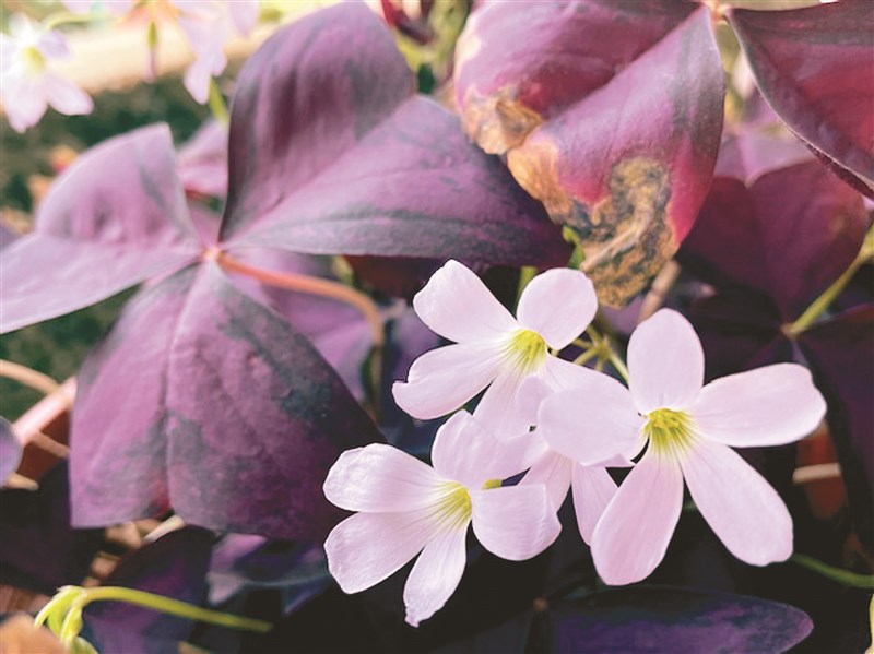 【生活快門】幸運草化身 文/官玉環 |2026.04.14 語音朗讀 61觀看次 字級 大 中 小 圖/官玉環 文/官玉環同事在走廊種了一盆花,每每經過,總會駐足欣賞。那盆「紫葉酢漿草」有著深紫色、倒三角形的特殊葉片,還有清新可愛的淡粉色小花。白天時葉片和花朵會張開,夜間或陰雨天就會閉合下垂,通常是三片葉子,偶爾會出現四片葉子,被視為幸運草的化身,其花語是「快樂與愛」,象徵幸福與浪漫。 前一篇文章 【不願服老】還是叫我阿姨吧 下一篇文章 【生活點滴】周二陽光日 熱門新聞 01【分數之外】看見另一種英文2026.04.0802清明豪雨 合歡溪出現新堰塞湖2026.04.0903杉林溪園區 紫藤花盛開2026.04.0804計程車掛牌費喊到35萬元 交部出手2026.04.0805火金姑故鄉 賞螢好去處2026.04.0906哥國動盪城 變身世界圖書之都2026.04.0807【練瑜伽品生活】英雄式二 英雄不能只看正面2026.04.0808吃素也能大補「鐵」 開心果芝麻含量豐2026.04.0809治腰痛 步行、慢跑讓椎間盤好好呼吸2026.04.0910市井日常入畫 陳臻描繪庶民百態2026.04.09 訂閱電子報 台北市 天氣預報 台灣一週天氣預報 相關報導 【暖心時刻】黑夜裡最亮的陪伴【論愛談情】跟孩子說對不起【生活快門】愛要及時【台灣媽媽在荷蘭】家族旅行 泰美好【心情筆記】寬懷心花開【生活快門】犬子午睡中 作者其他文章【生活快門】美哉大自然【生活快門】成為一道光【生活快門】一朵歡喜的心花兒【生活快門】音樂藏在石頭裡【生活快門】一念善意【生活快門】日日春日日好
