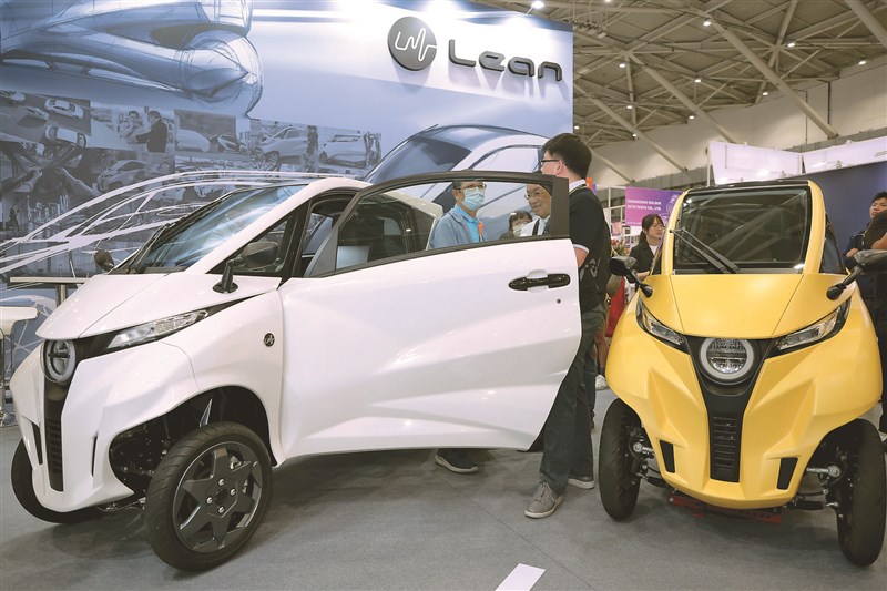 年度汽機車零配件、智慧移動與車用電子3大展覽昨起在台北市南港展覽館登場,外貿協會董事長黃志芳表示,今年有來自80個國家地區、總計近5000買主到訪,電動車與氫能車依舊是未來主流趨勢。圖為Lean Mobility現場展出最新型的城市小型電動車Lean 3,吸引不少民眾參觀。圖/中央社