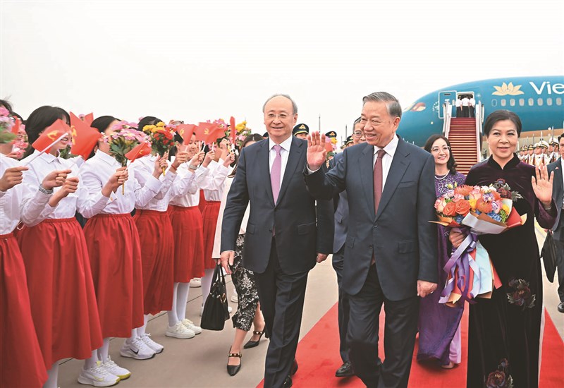 應中國大陸國家主席習近平邀請,越南國家主席、越共總書記蘇林(前排中)14日上午抵達北京進行為期4天的國是訪問。圖/新華社