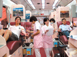 在炙熱的氣候下,有許多不畏酷暑的民眾前往捐血車準備挽袖捐血,胡玉寬與她的丈夫登記填寫捐血資料時表示,第一次捐血是丈夫的鼓勵,因為捐血有益健康,後來為了響應捐血活動,他們已成為捐血中心的固定成員。而從事電子科技業的蘇柏文則說,無論是公司舉辦的捐血活動,或是居家附近的捐血處,他一定主動捐血,他說有些愛心是金錢買不到的,就像血型不同,血液經過配對後才能使用,這麼稀少的血液來源,如果大家多能響應,為自己也為別人著想,那麼急難就能夠解除,令人感到有情、溫馨。