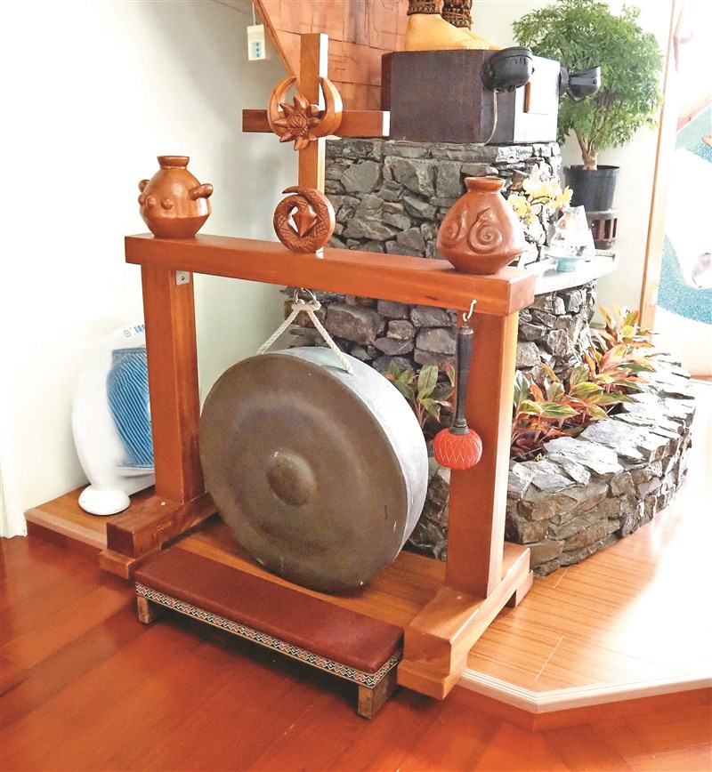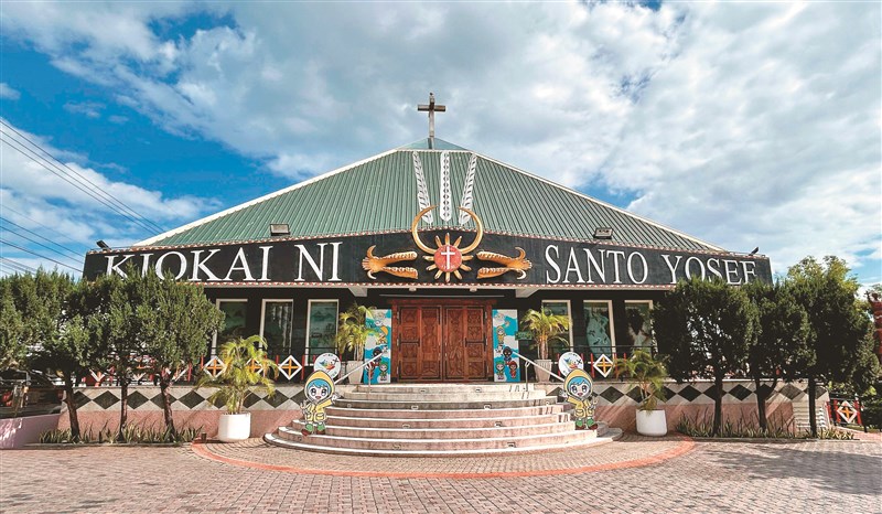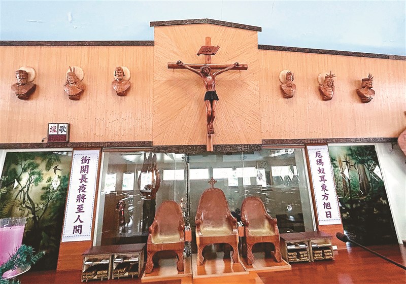 【美哉斯土】金崙聖若瑟天主堂 文/潘憲榮 |2026.04.15 語音朗讀 24觀看次 字級 大 中 小 金崙聖若瑟天主堂是全球僅有的三座黑教堂之一。圖/潘憲榮聖像兩側信徒雕像融合原民特色。圖/潘憲榮銅鑼用於彌撒祭典。圖/潘憲榮 文/潘憲榮台東金崙景色秀麗,這裡有一座充滿排灣族文化色彩、融入原住民傳統圖騰的聖若瑟天主堂,也是全球僅存的三座黑教堂(深色調的外觀與一般教堂不同,另外兩座在冰島與羅馬尼亞)之一,建材大量採用排灣族傳統的黑色石板,不論外觀或宗教圖像、聖物,都別具特色。這座金崙聖若瑟天主堂,由神職人員與在地原住民齊心協力建造,融入排灣族文化與相關圖騰。教堂外觀設計成陶壺狀──陶壺的排灣族語為「reretan」,為其珍貴的文化三寶之一(另兩樣為琉璃珠、青銅刀),代表祖先在人間的居住處;頂部立有一座十字架,陶壺口下方對應祭台,呈現天地連結的意境。教堂正門上方,有排灣族大頭目的頭部飾物:三根熊鷹羽毛,展現恢弘氣勢與寬闊視野。相傳百步蛇是地上之王,隨著年歲增長,最後會蛻變為熊鷹,保護其子民,故而百步蛇就是來保護陶壺的。對應此傳說,教堂設施有多處百步蛇圖騰,象徵守護的意涵。例如入口兩旁門柱上的聖水台,均刻有百步蛇圖樣,教友在此沾取聖水,表達虔誠與淨心;大門採雙開式,由實木搭配鑄鐵錨釘增加牢固性,並以門框護板加強保護,門上則雕刻宗教圖騰與排灣族的生活景況。堂內挑高的天花板與木質地板,營造出清幽的寧靜空間,各種聖物、圖騰與裝置,都注入排灣族元素。正前方高掛耶穌被釘在十字架的聖像,兩旁為穿戴原民服飾的耶穌門徒木雕像,展現出排灣族勇士的樣貌與氣場。祭台右側是散發慈愛光輝的聖母像,左側是工人裝扮的聖若瑟像,手持木匠工具與百合花;兩者均穿著排灣族傳統服飾,十分醒目。牆壁上除了鑲嵌聖經故事的玻璃彩繪,人物及服飾均以原民文化呈現,亦有原住民生活的彩繪圖樣,並吊掛成排的小米及傳統容器,象徵在天主護佑下豐衣足食的場景。由於原住民向來重視慎終追遠的祭祀活動,因此堂區另設有「歷代教友之靈位」,各種器物均以木料製作,表達對祖靈的崇敬;同時另備有蠟燭、念珠、長椅,供族人追思與祈禱,整體氛圍莊嚴而肅穆。至於戶外廣場,立有耶穌十四處苦路的銅雕聖像,精巧雕工栩栩如生;其中最醒目的,是一座穿著原民服飾並配刀的聖若瑟高舉小耶穌雕像,散發暖心風采。宗教是促進社會祥和的重要力量,金崙天主堂將宗教、生活與藝術相結合,不僅凝聚部落向心力,更建構出一座藝術殿堂與心靈地標。 前一篇文章 【長期徵文】 下一篇文章 【文學天地】卓肇昌 高雄地區古典詩壇宗匠 熱門新聞 01清明豪雨 合歡溪出現新堰塞湖2026.04.0902火金姑故鄉 賞螢好去處2026.04.0903治腰痛 步行、慢跑讓椎間盤好好呼吸2026.04.0904市井日常入畫 陳臻描繪庶民百態2026.04.0905毛豆富含植物蛋白質 改善膽固醇穩定血糖2026.04.0906美伊停火2周 雙方首達共識 2026.04.0907古坑桐花季 18日浪漫登場2026.04.100815%小琉球海龜曾受傷 癒合均需1年半2026.04.1009徐若熙日職首對決林安可 被敲1安2026.04.0910【相守一輩子】彼此信任才能天長地久2026.04.09 訂閱電子報 台北市 天氣預報 台灣一週天氣預報 相關報導 【翰墨天地】人心生一念【書藝心語】 少說多做【文化遺產】 閩西永定土樓王──承啟樓【寰宇采風】 去托倫致敬哥白尼【佛教海線絲綢之路──新媒體藝術特展】 觀世音菩薩【大明興亡錄】價值的天平: 朱棣面對藩國的手段 作者其他文章【寶島踏查】 農業文化美麗地標──二結穀倉 【生活快門】 綠繡眼迎新春【翰墨天地】揮毫馬字迎新春【文化印象】台灣詩路 鋪陳文學饗宴【美哉斯土】霧台耶穌聖心堂洋溢原民風采 【生活快門】無障礙鞦韆