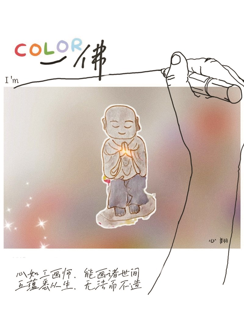 自勉「color佛」,是用colorful的諧音,ful用佛字取代,意旨真正認識人間佛教、認識自心,有信仰、實踐,您會發現心的世界真是多采多姿,也發願自利利他,傳播人間佛教的喜樂在世間。