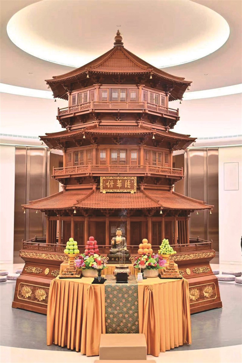 佛光山「法華塔」的起建,不僅記錄佛光山開山一甲子的歷史軌跡,更珍藏包括故宮館藏元代、明代版本在內的珍貴經本,其空間設計融合遼代佛塔建築智慧,以及佛教系統化與現代文物保存技術;其儀軌功能,則連結傳統拜經與當代信仰的實踐。作為佛光大佛金剛座下的神聖空間,「法華塔」既是「法寶」,更是「人間佛教」融合傳統與現代的精神象徵,展現了當代佛教建築空間運用在宗教性、藝術性與佛教文化永續上的多重意義。(下)