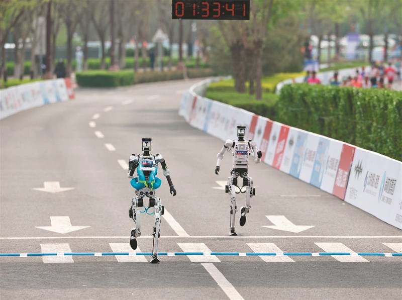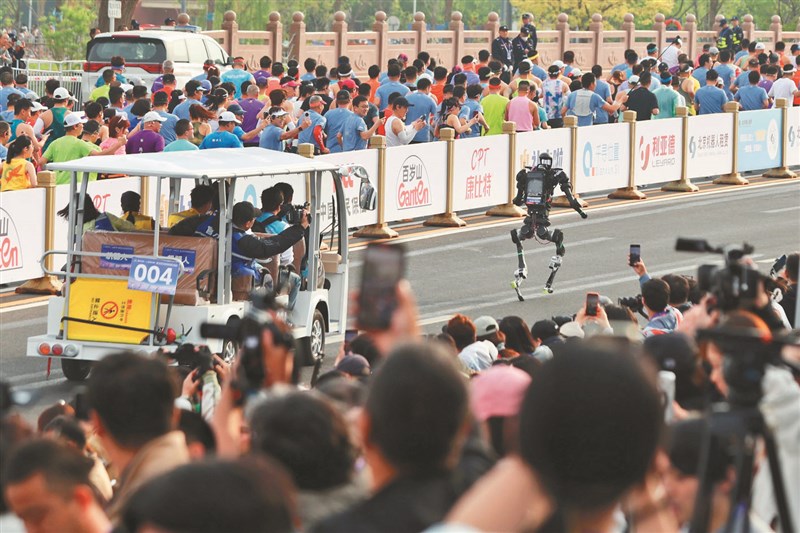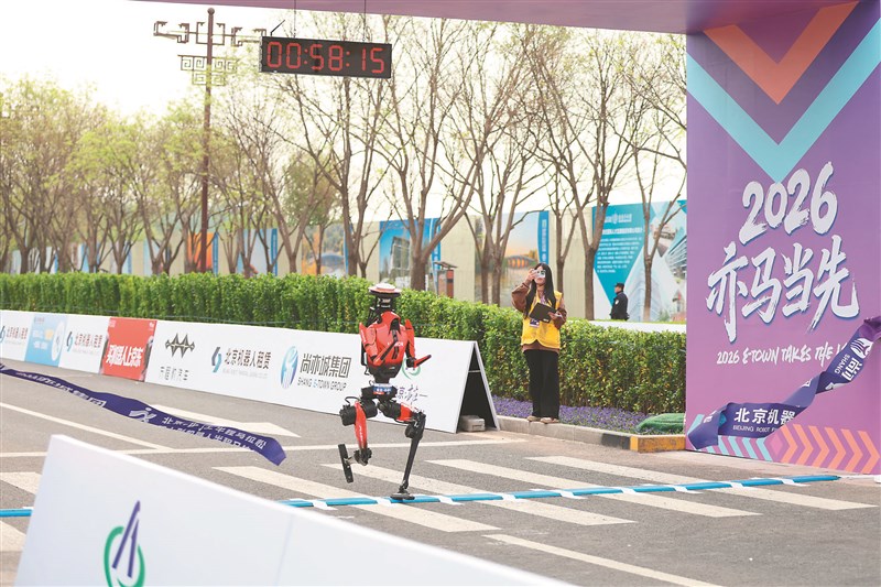 北京機器人跑半馬 破世界紀錄 |2026.04.20 語音朗讀 31觀看次 字級 大 中 小 團隊隨行操縱。圖/中新社「閃電」打破人類半馬紀錄 2026年北京亦莊半程馬拉松暨人形機器人半程馬拉松昨登場。「齊天大聖隊」自主研發的人形機器人「閃電」表現驚人,不僅成功奪冠,其賽事成績更打破人類半馬世界紀錄。圖/新華社性能提升、成功完賽 圖/新華社衝過終點線 2026年北京亦莊半程馬拉松暨人形機器人半程馬拉松昨登場。「齊天大聖隊」自主研發的人形機器人「閃電」表現驚人,不僅成功奪冠,其賽事成績更打破人類半馬世界紀錄。圖/中新社「閃電」機器人領獎 2026年北京亦莊半程馬拉松暨人形機器人半程馬拉松昨登場。「齊天大聖隊」自主研發的人形機器人「閃電」表現驚人,不僅成功奪冠,其賽事成績更打破人類半馬世界紀錄。圖/新華社 【本報綜合報導】「2026年北京亦莊半程馬拉松暨人形機器人半程馬拉松」賽事昨日上午鳴槍開跑,參賽規模較去年大增近5倍,有超過百支隊伍、300多台機器人參與,還包括來自香港及法國、德國、巴西等隊伍;現場亦有約1.2萬名人類跑者參與,同時開放人形機器人專屬組別競速。當中,深圳榮耀智慧科技開發有限公司齊天大聖隊的「閃電」機器人,以50分26秒的「淨用時」(扣除中間更換零件、準備、故障排查等時間)成績奪得冠軍,這一成績超越烏干達名將基普利莫(Jacob Kiplimo)在今年3月里斯本半程馬拉松賽中創造的57分20秒的人類男子半程馬拉松世界紀錄。今年人形機器人有來自超過13個省分的隊伍報名參加,共計105組、超過300台人形機器人投入比賽,顯示相關產業在短時間內快速發展。各參賽機器人外型與技術各異,涵蓋不同尺寸與結構設計,有的強調穩定步態,有的則著重速度與靈活度,呈現出多元技術路線競逐的局面。相較去年賽事,多數人形機器人仍需大量人工輔助、步態不穩甚至中途停擺,今年整體表現已有顯著提升。不少機器人已能自主完成長距離移動,並在轉彎、加速與減速等過程中保持協調,部分隊伍亦導入更高效的電池系統與感測技術,使機器人在續航與環境應對能力上同步進步。模擬城市路況 考驗性能效率主辦單位介紹,此次比賽設計融和平地、坡道、彎道、狹窄路段等10餘種地形,設置最大8%上坡、6%下坡及累計100公尺爬升,甚至加入一處障礙,模擬城市道路中的突發情況。這對機器人的核心能力提出更高要求,同時考驗機器人動力控制與能源管理效率。今年參賽隊伍的成績超過去年水平,冠軍團隊的榮耀公司測試開發工程師杜曉迪說,「閃電」機器人參考人類優秀運動員身材,設計之初便擁有一雙「大長腿」,同時具備強大的液冷系統,能幫助行進途中散熱。馬拉松愛好者、民眾尹先生說,這次機器人跑得很厲害,超過自身想像,從來不知道機器人可以像人類一樣奔跑,為此他感到印象深刻,希望明年有機會可以一起人機共跑。交警機器人天軼 首度執勤除參賽隊伍的機器人引人注目,北京交警機器人「天軼」也首次正式亮相,參與現場交通指揮工作。據介紹,交警機器人「不知疲倦」,電量充足即可持續指揮。報導指出,本次亮相的交警機器人「天軼」,目前已實現交通手勢指揮、交通安全宣傳及交通出行引導等功能,後續將逐步拓展至專業知識問答、交通違法識別及路況設施巡視等應用場景,以強化城市交通管理能力。開發區交管支隊警察隋宏大指出,該機器人本次在賽事中以固定區域方式執勤,於轉彎路口對機器人選手進行引導,並與交通信號及現場人員協同運作。業界普遍認為,人形機器人正從實驗室階段逐步走向應用場景,未來有望在物流配送、公共服務及高風險環境作業等領域發揮功能,也降低人力操作風險。 前一篇文章 核三再運轉計畫700頁 核安會啟動審查 下一篇文章 美伊停火22日屆期 伊朗稱達協議尚遠 熱門新聞 01MLB太空人打敗洛磯 鄧愷威中繼成功2026.04.1602法全票通過 掠奪文物歸還中國2026.04.1703【深深思念】把悲傷 穿在身上2026.04.1404勞動部將研議 勞退舊制移入新制2026.04.1805佛光山線上佛學院開學 逾百學員雲端共學2026.04.1506《浩瀚星雲》大阪海外首演 轟動滿座 2026.04.1407預備檀講師研習 傳播人間佛教正能量2026.04.140845%失智症可預防 類黃酮食物護大腦2026.04.1609【詩】靜寂 2026.04.1710【詩】春天的孤挺花2026.04.16 訂閱電子報 台北市 天氣預報 台灣一週天氣預報 相關報導 達爾湖漂浮學校 拯救偏鄉教育另類健身房 運動兼做公益時代雜誌百大影響力人物 魏哲家上榜載菜載溫情 背簍輪渡啟新航川普關稅 7月恐捲土重來戰爭高油價 各國祭補貼穩民生