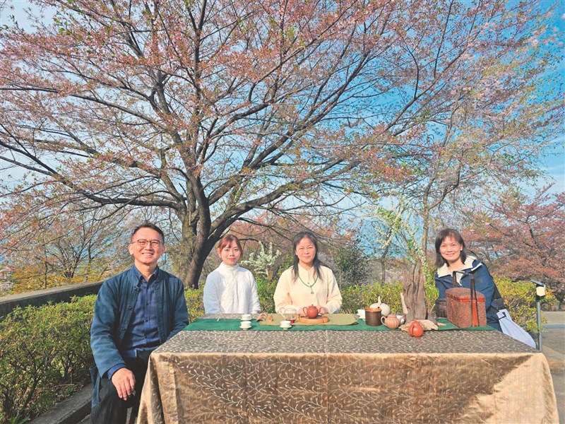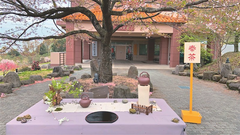 儘管今年櫻花提早綻放,部分吉野櫻已凋落,然垂枝櫻盛開、花瓣隨風飄落,映襯中式茶席更顯雅致。現場除品茗體驗外,另設奉茶區,讓遊客隨喜品飲,在一杯茶中感受寧靜與暖意。