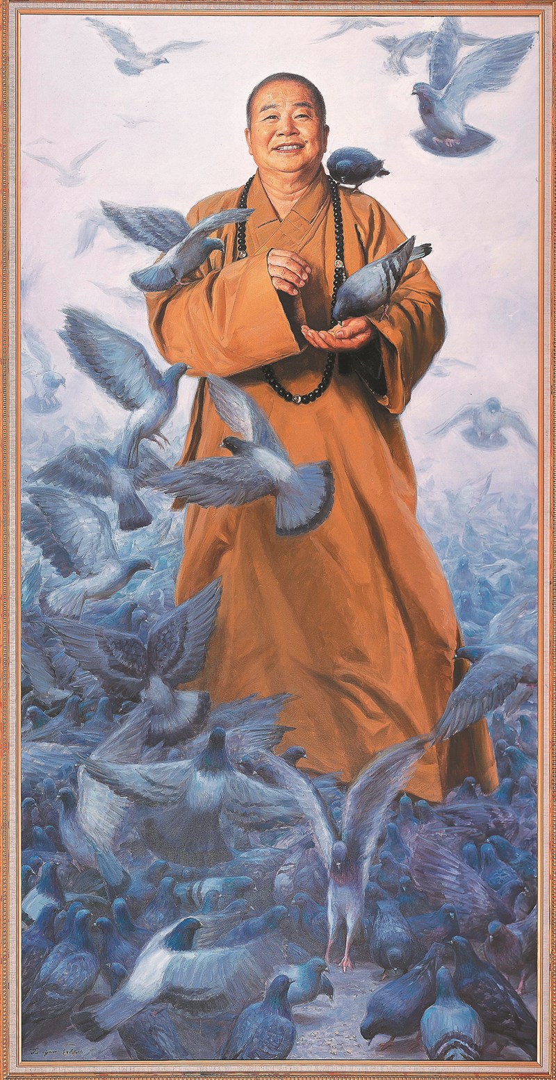他曾為我畫了很多肖像,我就跟他說:「佛教講『無我相、無人相、無眾生相、無壽者相』,我不需要這麼多的肖像。」他竟也用佛法回答我:「我也知道師父不著相,但是世間還是要有相。」2003年,他和旅美的雕塑家,現任重慶大學雕塑藝術研究院院長郭選昌先生合作,以我的肖像創作一座高近三米的青銅圓雕像,取名叫〈雲遊普渡〉。因為他們的合作,銅像姿態飄逸,栩栩如生,獲得很多信徒歡喜,所以現在有數十尊我的銅像站立在世界各地。到處看到自己的銅像,讓我感到頗不習慣。但弟子告訴我說:「佛祖也不要像,可是『像』卻是信徒所需要。」我一聽,也只有隨他去了。(待續)