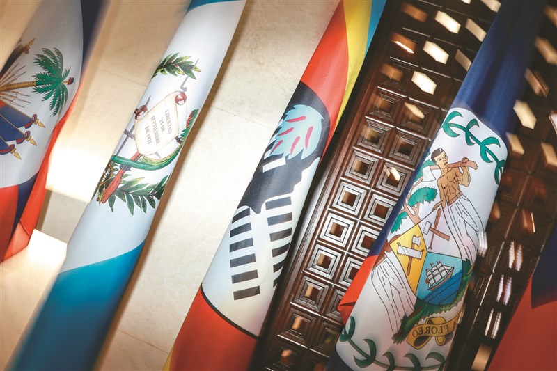 賴清德總統原今日出訪史瓦帝尼王國被迫取消。圖右2為史瓦帝尼國旗。圖/曾原信