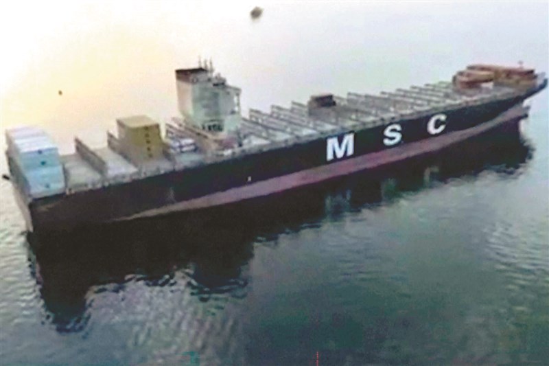 伊朗伊斯蘭革命衛隊指稱,巴拿馬籍的MSC Francesca貨櫃輪試圖穿越荷莫茲海峽,已被攔截與扣押。圖/法新社