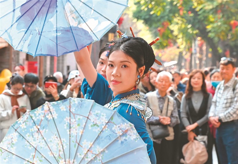 【文創之旅】 千年福州 旅遊新風尚 文/記者林善傳 |2026.04.25 語音朗讀 40觀看次 字級 大 中 小 遊客在福州上下杭傳統街區乘船遊覽。圖/新華社演員在福州三坊七巷南後街牌坊前表演國風舞蹈。圖/新華社福州三坊七巷南後街愛心樹上的投影秀,以及空中飄浮的「福魚」吸引眾多市民遊客拍照。圖/新華社非遺代表性傳承人董雅萍(右一)在三坊七巷為市民遊客展示剪紙技藝。圖/新華社福建省歌舞劇院民族樂團演員林敏,在福州西湖公園「周末戲相逢」公益演出現場,表演二胡獨奏《戰馬奔騰》。圖/新華社 文/記者林善傳早春時節,剛剛卸下「年味」盛妝的城市,轉瞬之間,又換上了滿城繁花的春裝。城中烏山上,櫻花、桃花漫山鋪陳;琴亭湖畔,杜鵑花在暖陽下舒展綻放;三坊七巷的馬鞍牆上,粉色三角梅悄然攀上翹角飛檐;閩江之濱花海遠闊,綿延的紫羅蘭、小蒼蘭、油菜花如巨幅織錦覆被大地……它就是福州,一座擁有二千二百多年建城史的歷史文化名城;一座地處東海之濱、閩江之畔,城在山中、山在城中的濱海山水城市。福州的煙火氣,藏在縱橫交錯的街巷裡,也融在日常的寒暄問候中。民宿老闆會為晚歸的遊客留燈,小吃攤主會耐心講解美食的作法,出租車師傅會主動推薦小眾打卡點,這種發自內心的熱忱,讓每個遊客都能感受到「家」的溫暖。「福州文旅火爆出圈,並非偶然的流量垂青,而是福州人用骨子裡的淳樸、熱情和責任感一步步『焐熱』的。」閩江大學經管學院教授趙明認為。古厝中的千年傳承「一片三坊七巷,半部中國近代史。」作為福州的文化地標,三坊七巷被譽為「城市裡坊制度活化石」和「明清建築博物館」,這裡保存著大量明清時期的古厝民居,馬鞍形風火牆高低有致,青石板路交織錯落。這片街區人傑地靈、名家輩出,林則徐、嚴復、冰心等許多名人曾在此居住,是名副其實的「近代名人聚居地」。近年來,三坊七巷開發利用古厝資源,融合非遺、重點文化項目及中華老字號企業,形成「商街、文坊、俗巷、雜邊」的文旅商格局,推動古厝與活態文化的深度融合。針對不同遊客群體的需求,三坊七巷做了精準的產品打造。例如,契合年輕群體傳播需求打造了愛心樹等網紅打卡點,成為遊客拍照的熱門選擇;面向青少年與家庭客群,開發系列研學產品,讓遊客在遊玩中讀懂歷史、感受閩都文化的當代活力。同時,街區的文創設計靈活新穎,讓三坊七巷既還原了歷史風貌,又充滿了靈氣與生氣。法國遊客阿斯瑪是在當地自媒體短影片上看到福州的。「很感興趣,就想來感受一下福文化。這裡文化氛圍很好,我很享受這段旅程。」阿斯瑪說。「三坊七巷不僅是建築,更是活的歷史。我們通過系統性講述它背後的故事,結合多元體驗形式,讓大家在參觀的同時,感受閩都文化的深厚底蘊。」福州市旅遊協會副會長鄭憲說。如今,這裡一年四季可見身著漢服的遊客,與古厝風貌相映成趣,構成一道流動的風景線。與三坊七巷的人文底蘊相得益彰的,是煙台山的中西交融。這片占地一千一百四十四點五畝的歷史風貌區,曾先後匯聚十七國領事館(辦事處)、三十三家洋行,區域內現存文保建築、歷史建築及傳統風貌建築一百九十一處,堪稱「萬國建築博覽群」。哥德式的石厝教堂與維多利亞風格的美國領事館舊址比鄰而立,百年銀杏旁咖啡館的香氣引來不少遊客。傳統裡的潮流表達「三條簪」是福州傳統女性頭飾,三根銀簪輓起青絲,既顯溫婉又藏堅韌。如今,這一古老的非遺技藝成為福州文旅的「流量密碼」,三條簪妝造體驗店裡人氣爆棚,頭戴三條簪的遊客成為街頭最亮眼的風景。「一直很喜歡傳統文化,看到三條簪的視頻後,就特意來福州體驗。」成都遊客蘭女士坐在妝造店裡,看著鏡子裡的自己,滿意地說,「化妝師不僅手藝好,還給我講解了三條簪的歷史和寓意,讓我對福州文化有了更深的了解」。在黃秋輝看來,獨特的地域性標籤,讓三條簪成為區別於其他城市旅拍的核心文化標識,「很多人看到三條簪造型,就會聯想到福州,進而想來福州旅遊、體驗文化,它已經成為一張亮麗的福州城市名片」。非遺煥新,不止於三條簪的出圈。在三坊七巷的風雨長廊裡,非遺快閃輪番上演;上下杭的古厝中,連江仁山拉線獅表演精采絕倫,線獅在絲線牽引下做出撲騰跳躍、撲搶繡球等動作,引得觀眾陣陣喝彩;梁厝古村的民藝工坊裡,遊客可以親手體驗軟木畫、油紙傘製作等非遺技藝,在動手實踐中感受傳統工藝的魅力。閩劇作為福州方言的「活化石」,也在創新中煥發新生。自《福州市閩劇保護規定》二○二一年施行,福州市級財政累計投入專項經費超過人民幣八千萬元支持閩劇發展,創排的《過崖記》、《門檻記》、《幻戲圖》入選國家藝術基金資助項目,全市七十六家閩劇院團年均演出超萬場、覆蓋觀眾約三百萬人次,「周末戲相逢」等常態化惠民演出,讓市民在家門口就能享受戲曲盛宴。福州閩劇藝術傳承發展中心推出的沉浸式劇場演藝《三山舊夢》場場火爆,演出融合傳統曲牌與現代編曲,讓老戲迷品出韻味、年輕人覺得新鮮。山水相依自然中的鬆弛之境「城在山中,山在城中」,閩江穿城而過,山水格局造就了福州獨有的鬆弛感。鼓山是福州的標誌性山脈,登山步道蜿蜒曲折,沿途古木參天、怪石嶙峋。遊客們沿著步道拾級而上,呼吸清新空氣,俯瞰福州城全景,感受