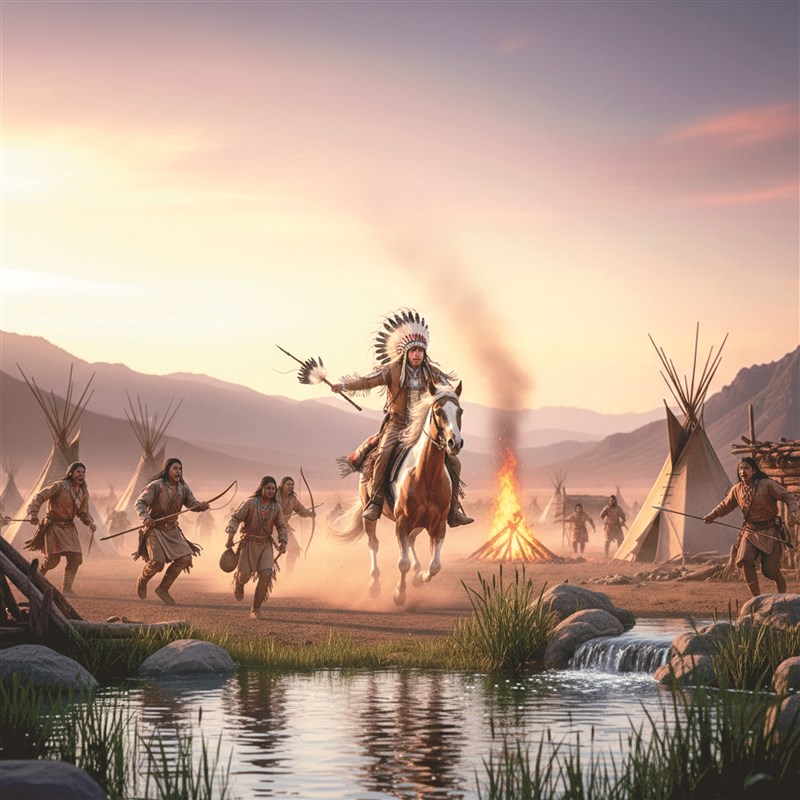 敵方首領就對他說,「如果你願意自殺,我就分一半水源給你的族人。」為了族人,他毫不猶豫拔劍刺向自己的右腹部,瞬間血流如注。然而,敵方首領卻在他背後哈哈大笑,並用長矛刺穿他的背部直至大腿。他這才發現自己受騙了,帶著憤恨與疼痛往生了。