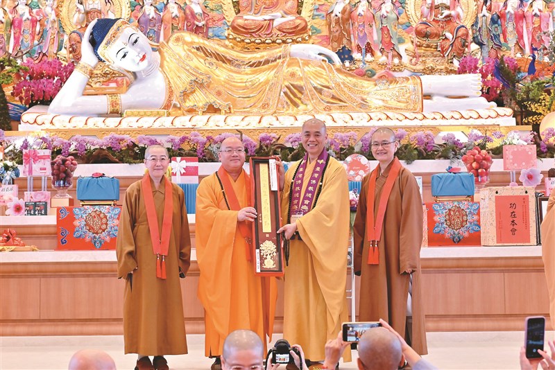 林振祿表示,這場盛典即是內政部致力於宗教多元、包容、邁向國際的最佳寫照,期許台灣佛教界能夠將佛光普照到每個家庭,接續頒發台灣佛教總會理事長當選證書予會常法師,祕書長予屏東縣佛教會理事長見引法師,以及副理事長、常務理監事等聘書,佛光山中區總住持覺居法師獲頒台灣佛教總會理事暨大台中佛教會理事長聘書,由屏東講堂住持妙詠法師代表接受。
