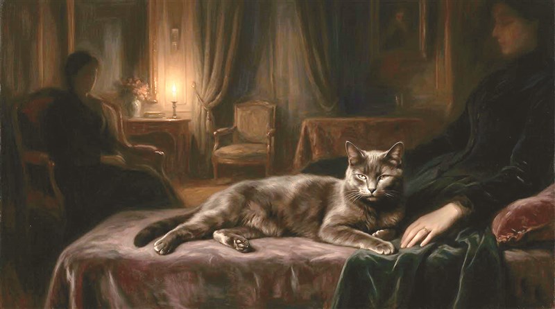 當詩人的手指從容撫摸貓的背脊,那彷彿觸電般的嬌軀,其實指涉著對女性身體的感官震顫。波特萊爾曾言,浪漫主義恰恰在於感受的方式。他將這種「帶電」的現代感受,揉合小說家愛倫坡筆下那種夾雜著愛欲、死亡與悲劇的毀滅感,投射在女人如標槍般尖銳冷澈的眼神裡。那瞬間的觸碰,既是危險的暗香,也是對愛情若即若離、深陷其中難以翻身的複雜詠嘆。