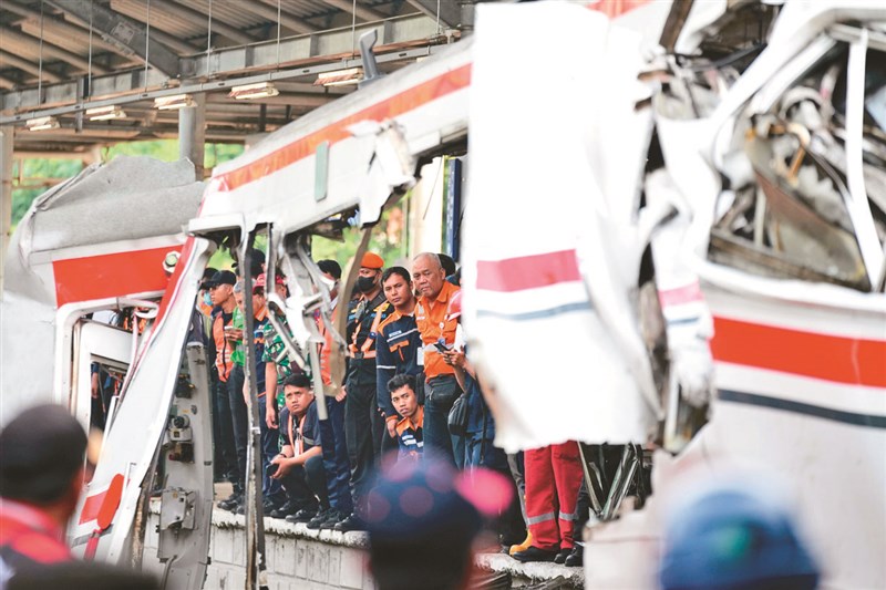 印尼火車相撞 14死84傷 圖/美聯社 |2026.04.29 語音朗讀 21觀看次 字級 大 中 小 印尼首都雅加達郊外27日深夜發生列車相撞事件,死亡人數已上升至14人,另有84人受傷。當局表示,受創最嚴重的是女性專用車廂,死者全是女性。圖/美聯社 印尼首都雅加達郊外27日深夜發生列車相撞事件,死亡人數已上升至14人,另有84人受傷。當局表示,受創最嚴重的是女性專用車廂,死者全是女性。圖/美聯社 前一篇文章 美不滿伊朗新提案 恐再鎖荷莫茲2個月 下一篇文章 白宮記協晚宴槍手 被控暗殺川普未遂 熱門新聞 01全中運張雅佳游泳 3 金 雙破全國2026.04.2402【走讀城鄉】淡水市街清代三合院─施家古厝2026.04.2403台南.佳里 蕭壠香火溯根源 紅磚古厝映流年2026.04.2704【詩】諸羅山社2026.04.2405駐巴拉圭大使 參訪巴拉圭佛光山2026.04.2306普門寺43周年紀念 千人朝山修持2026.04.2307台灣佛教總會理事長交接 佛光山祝賀2026.04.2708【人間行者心】日常即是佛法2026.04.2609新加坡佛光山 硬筆字賽千人揮毫2026.04.2410好萊塢剩食 化弱勢救命餐2026.04.26 訂閱電子報 台北市 天氣預報 台灣一週天氣預報 相關報導 紫花海之約英王訪白宮會川普 修補英美關係無人機燈光秀俄防長訪北韓 擬簽5年軍事合作車諾比核災 40周年加薩戰後 巴勒斯坦首次選舉 作者其他文章嘉年華角色選拔迷霧晨光