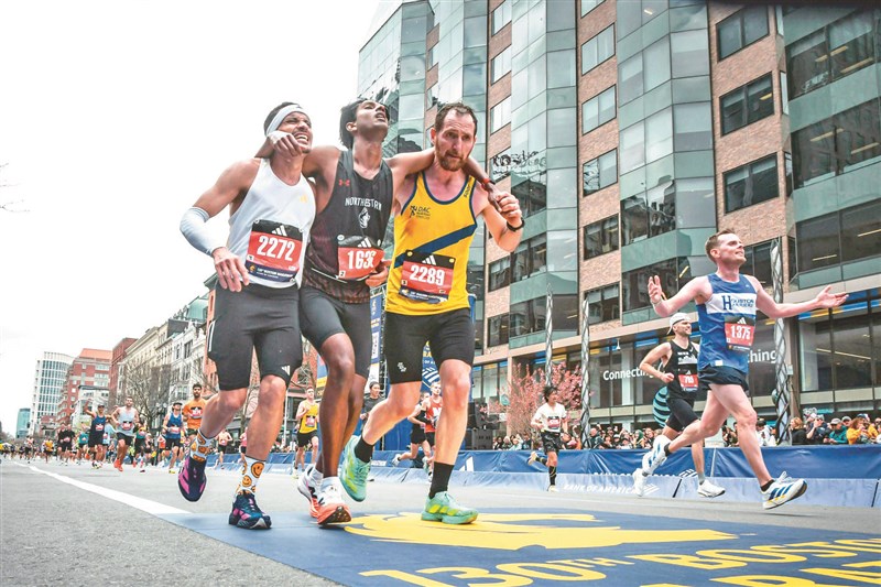 【本報綜合外電報導】日前在美國波士頓馬拉松終點前約305公尺處,一場突如其來的體力崩潰,卻成就一段跨越國界的動人故事。來自北愛爾蘭的跑者貝格斯(Aaron Beggs)與巴西跑者奧利維拉(Robson De Olivera),攜手扶起倒地的印度裔跑者哈里達斯(Ajay Haridasse),3人共同跨越終點線,畫面迅速在網路瘋傳。