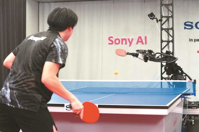 索尼桌球機器人「Ace」,與職業運動員進行對戰。圖/美聯社