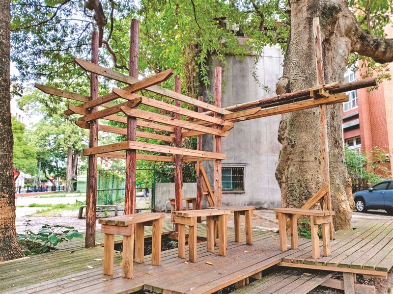 【生活快門】悠然自造所 文/賢文 |2026.04.29 語音朗讀 22觀看次 字級 大 中 小 圖/賢文 文/賢文建中的美術、工藝課,常有利用校園的實作項目,最近幾年,我見到不少木工作品被當成校園藝術裝置。像這座名稱叫「 悠然自造所 」的木工作品,便被建造在兩株巨大老樹之間。下課後,學生可以在遮陰的樹下,悠然地聊天、討論功課……真是「自造」出來的休閒好地方。 前一篇文章 【美好時光】球場上讓人驚豔的事 下一篇文章 熱門新聞 01全中運張雅佳游泳 3 金 雙破全國2026.04.2402【走讀城鄉】淡水市街清代三合院─施家古厝2026.04.2403台南.佳里 蕭壠香火溯根源 紅磚古厝映流年2026.04.2704【詩】諸羅山社2026.04.2405駐巴拉圭大使 參訪巴拉圭佛光山2026.04.2306普門寺43周年紀念 千人朝山修持2026.04.2307台灣佛教總會理事長交接 佛光山祝賀2026.04.2708【人間行者心】日常即是佛法2026.04.2609新加坡佛光山 硬筆字賽千人揮毫2026.04.2410好萊塢剩食 化弱勢救命餐2026.04.26 訂閱電子報 台北市 天氣預報 台灣一週天氣預報 相關報導 【病房一隅】天使看護【生活 快門】喜見彩菇【生活練習題】從做不到到再來一次【生活快門】牆壁長鼻子【台灣媽媽在荷蘭】聽見你的心聲【生活 快門】來自天堂的水晶筆 作者其他文章【生活快門】天鵝之戀【生活快門】母雞帶小鴨【生活快門】花開蝶來【生活快門】鴿子也要避暑【視覺DJ】庵影茅草香【植感時光】加羅林魚木 文青朝聖