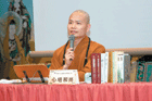 心培和尚以「禪定名攝諸亂心」,說明禪定能止息不斷向外攀緣的心,以無失無得、不憂不懼的心,面對生命中的成敗起落、生老病死,成為自在快樂的解脫人。 (人間社記者陳碧雲攝)