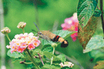 幾天前,蘇聖富帶著相機,在林南村的山區,發覺一個小亮點,在花叢中移動,上前查看,原來是一隻從飛蛾,他說:「牠有一隻很長的吸管,好像在吸食花蜜,且翅膀動得很快,很像蜂鳥。」(圖/蘇聖富提供)