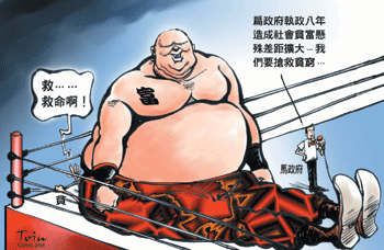 以政府公部門的統計數據來看,近八年來,政客成為財團加速貧富差距的助力,政府對中產階級沉淪束手無策,使中產階級蒸發,也就是說,台灣的下流社會已成形,影響人民的教育觀、消費行為,未來將有更嚴重的社會問題。