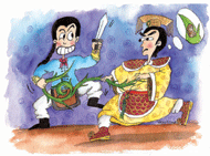 燕王一聽,拍手說道:「這主意好!」他馬上召來衛人問說:「你在棘刺上刻猴用的是什麼工具?」衛人說:「用的是刻刀。」燕王說:「我現在無法立即看到你刻的小猴,但是想先看一看你的刻刀。」