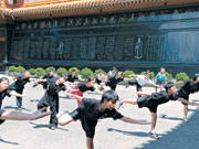「武術是動禪,有別於打坐的靜禪,但兩者有異曲同工之妙,最終目標一致,都是在修行。」教練郭孝海不僅教授少林武術刀、劍、拳、棍,也要小朋友背《千字文》、寫書法、作文,讓孩子同時從動、靜中學習動靜一如,培養耐性,也可從作文中,了解孩子的心性,他說:「心性變了,氣質就會改變。」(人間社記者王麗君攝)
