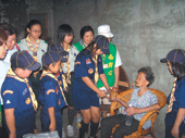 慧慈幼童軍團由善化鎮南關里及西關里長一行人陪同下,拜訪了十二位獨居老人,其中一百零二歲人瑞陳林緊和林王痛是全鎮最高齡者。陳林緊平日仍能以針線修補衣物,積極樂觀,對於幼童軍造訪熱情相待,歡喜之情溢於言表;林王痛則因身體不適,童軍全力撫慰,希望她早日恢復健康。