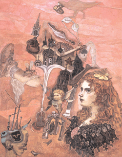 樓上唱詩班的後方,愛神邱比特和撒旦坐在管風琴上觀禮,邱比特露出無邪的笑靨,收起他的小金箭,得意的向撒旦伸手:「我贏了,賭金拿來吧!我早就說過,愛情的力量勝過一切,你看,他們歷經千辛萬苦,終成美眷,這件事只要有我就搞定,真愛萬歲,至情無上,你怎麼破壞都沒有用的。」