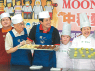 離中秋節還有兩個禮拜,但受經濟不景氣影響,跟往年比起來,不僅一般月餅業者的銷售數字下滑許多,社福團體所製作的月餅更是苦無訂單,馬英九、內政部長廖了以與柴松林昨天穿上「圍兜兜」動手做月餅,呼籲民眾訂購社福團體的月餅。來自全國21個社福機構昨天一早也在恆愛中心擺好「試吃攤」,讓馬英九等人品嘗。