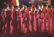 上圖:在「行初獻禮」、「行亞獻禮」、「行終獻禮」時,樂生奏樂,麾生舉麾,節生舉節,跳八佾舞。