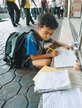 菲律賓 1/6兒童失學 圖/法新社 |2008.09.16 語音朗讀 147觀看次 字級 大 中 小 菲律賓榮譽學生馬根日前蹲在馬尼拉市區的建築物台階前寫功課。菲國約有六分之一的學齡兒童失學,比例不斷提高,這二年正常上學的小學學童約占全部的百分之八十三,低於五年前的百分之九十,中學生的入學比例更是只有百分之五十九。圖/法新社 前一篇文章 【國際簡訊】 下一篇文章 可愛,無可匹敵 熱門新聞 01【詩】很遠的那邊2025.11.2402【島嶼拼圖】啜飲時光佳釀:探訪嘉義文化創意產業園區 2025.11.1803【閃文集】貓咪成長的魅力2025.11.1804【歲時.節氣】小雪──霜風一夜落寒林2025.11.2005COP30首份草案 重啟化石燃料戰場2025.11.2006新營講堂慢活閱讀 佛光家庭享受走讀趣2025.11.2007【愛的關鍵字】 老壯世代的共居挑戰2025.11.2008佛大蔬食系 國際廚藝賽獲銀、銅牌2025.11.2009【分享時刻】荷花與火車2025.11.2010北島佛光山三皈五戒 點亮自性開啟智慧2025.11.20 訂閱電子報 台北市 天氣預報 台灣一週天氣預報 相關報導 峰會罕見「開場就通過宣言」 劍指美國 李強G20喊話維護自由貿易28點俄烏和平計畫 川普:非最終案越南洪災90死12失蹤 18萬棟房屋被淹泰國燈光節 魅力四射高市出席G20峰會 尋求與李強對話巴西COP30展館 驚傳失火 作者其他文章歐洲超大望遠鏡 坐落智利沙漠諾貝爾光之周《綠野仙蹤》紅寶石鞋 將拍賣正視極端天氣影響胖胖敞篷車沙丘瑜伽傳和平