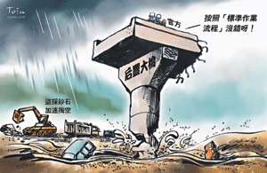 以后豐大橋為例,若能及時修護,或早點封橋,就不會發生斷橋奪命意外,但主管單位墨守成規,未採取積極因應措施,就業務範圍來說,都是「標準作業流程」惹的禍,后豐大橋斷裂意外,可說是天災,更可說是人禍。