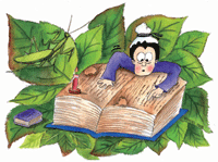 書生看了非常高興,於是整天坐在樹下,等著尋找能隱身的葉子。過了很久,他終於看見一隻螳螂,正躲在一片葉子後面伺機捕蟬,書生高興的去採這片葉子。沒想到葉子落到樹下,和落葉混在一起,已經分不清是那一片了。