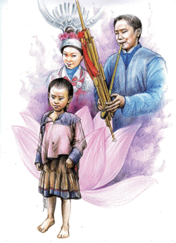 在借居燕子家期間,恰是當地一年一度苗族傳統節日蘆笙節。蘆笙是一種以白竹,但被苗族人稱之為蘆笙竹所製作,大小不一,短則二尺、長則丈餘,粗細也不同,但都有六笙五音,可用於伴奏與獨奏的傳統吹奏樂器。跳蘆笙則是流行於貴州、雲南、廣西與湖南苗族、侗族與納西等族的一種歌舞,幾乎每個村寨都會設有一個蘆笙堂,以供喜慶節日裡大夥來此跳蘆笙,並且無一例外的是每次蘆笙會的開場,都是由當地德高望重的老人來吹笙領舞。
