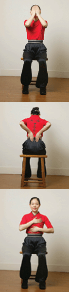 {4}兩手置於後腰部位,上下摩擦腰腎。