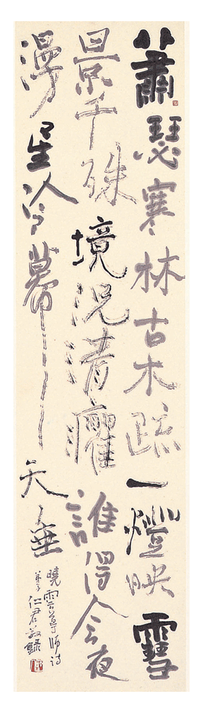 附圖為筆者抄錄曉雲禪師的七言詩:「蕭瑟寒林古木疏,一燈映雪景千殊;境況清況誰得會,夜漫星冷幕天垂。」濃淡和乾濕筆兼用,期隨順自然,像禪者的心。